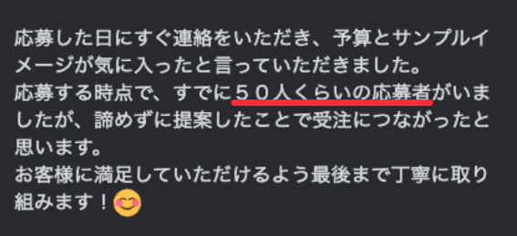 そしてこうやってクライアントからの信頼を積み上げていくことで最高評価☆5をもらい続けるわけです。