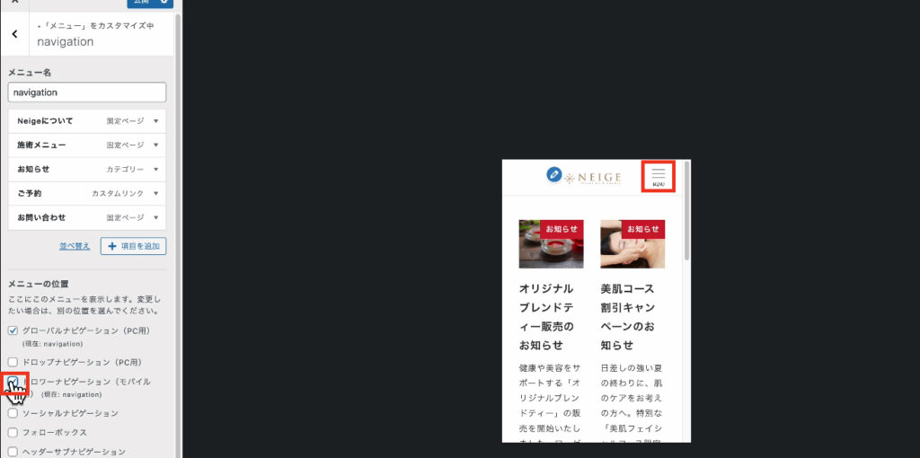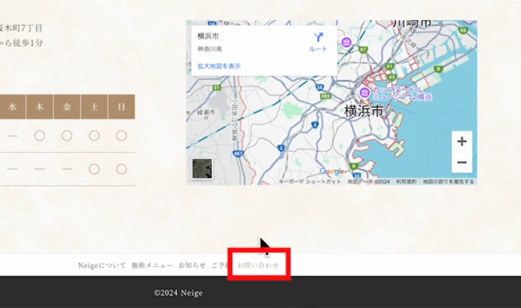「ご予約」は外部サイトを連携させる想定なので下層ページは作りません。