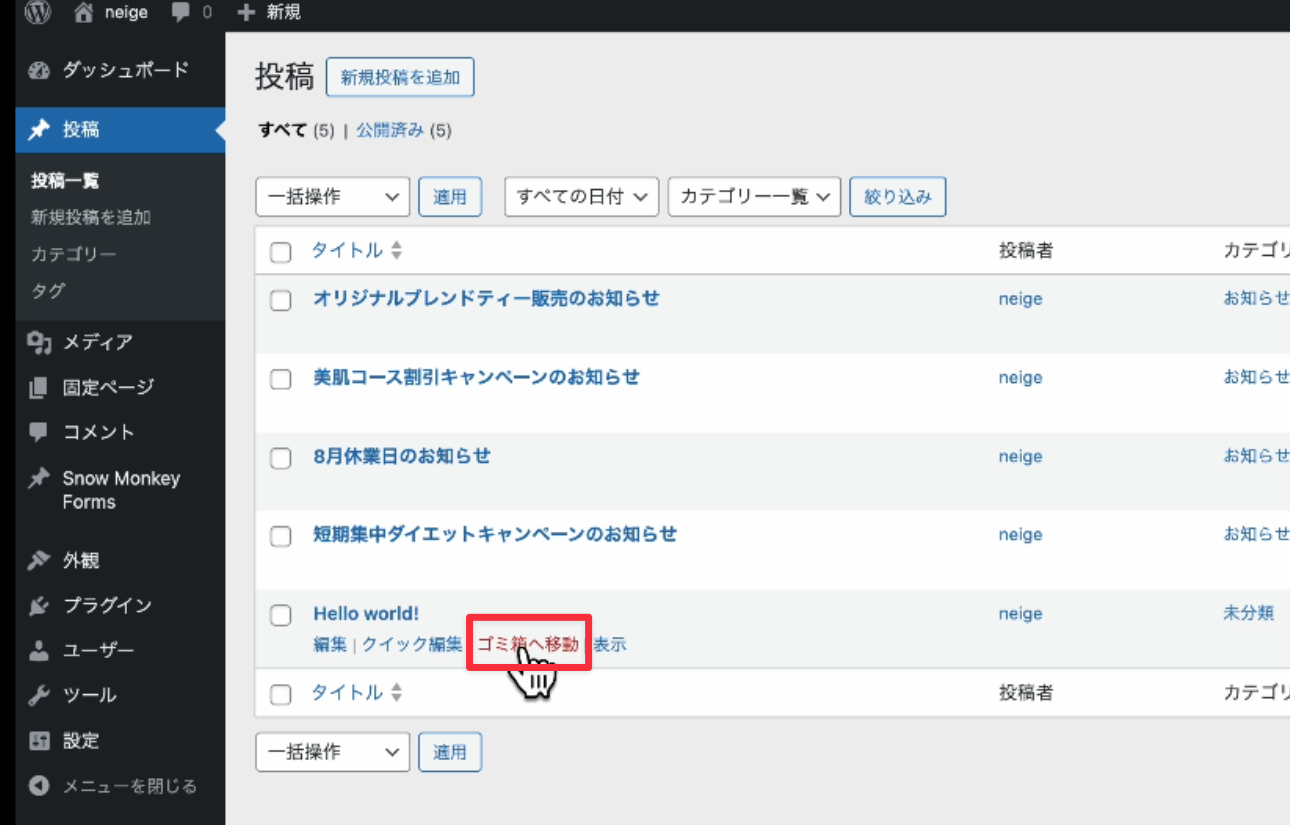 1時間でデータがリセットされますが、まずは手軽にSnow Monkeyに触れてみたいという方はこちらを試してみてください。