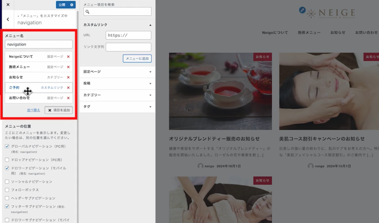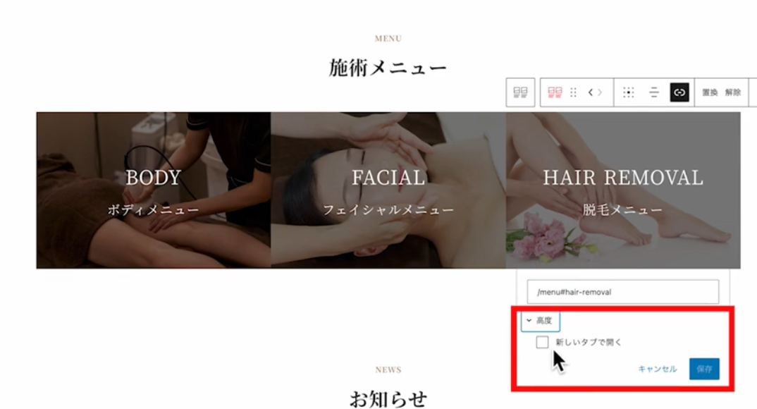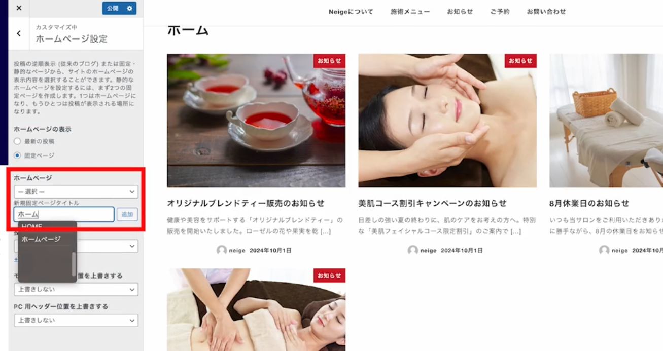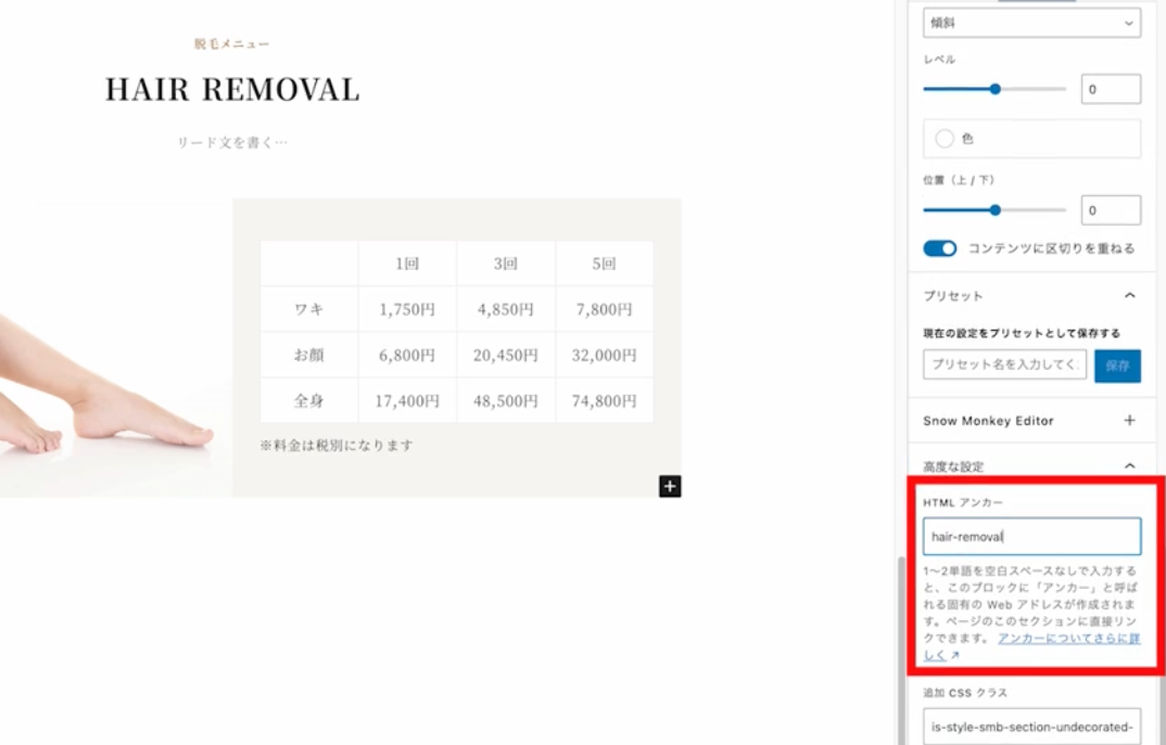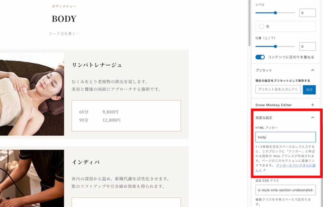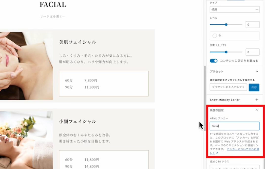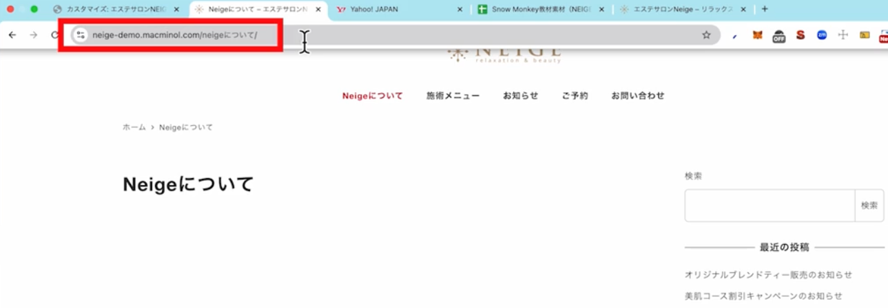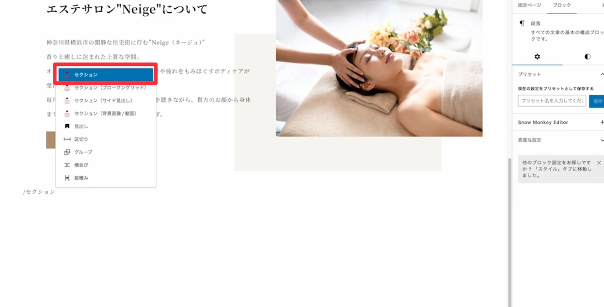 今回は架空のエステサロンのサイトをSnow Monkeyで制作していきます。
