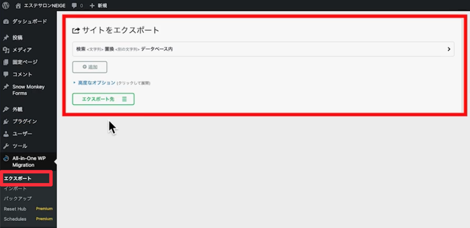 そうするとここのAll-in-One WP Migrationからエクスポート、
