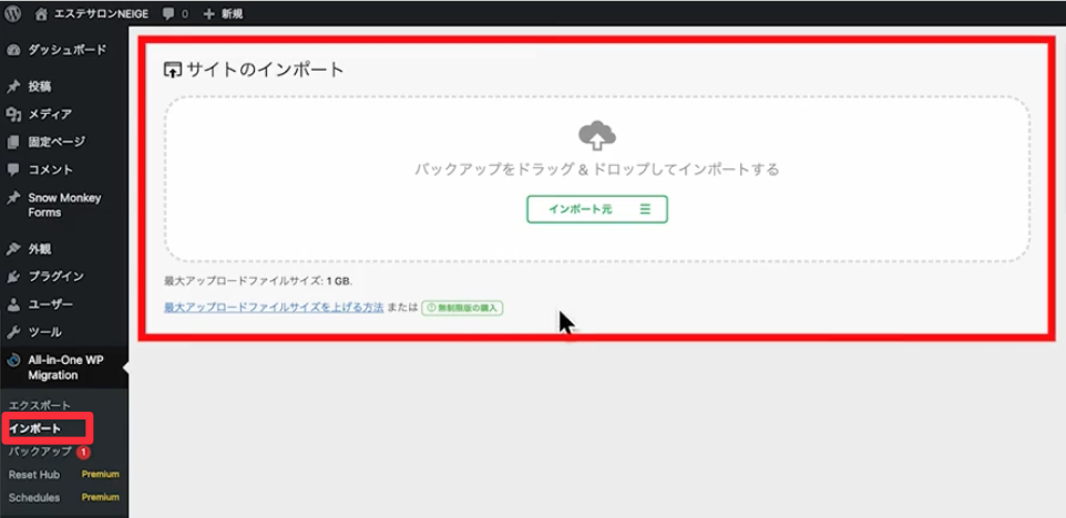 また、インポートする際に無料版だとアップロードするファイルの容量制限がかかって、インポートできない場合はがあります。