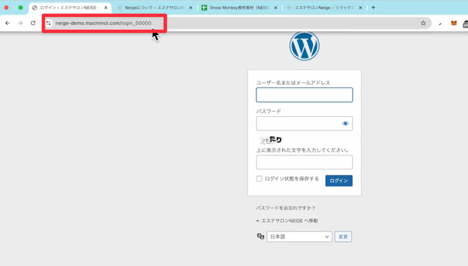 これで変更を保存するとログインURLはwp-adminからlogin_00000に変更されています。