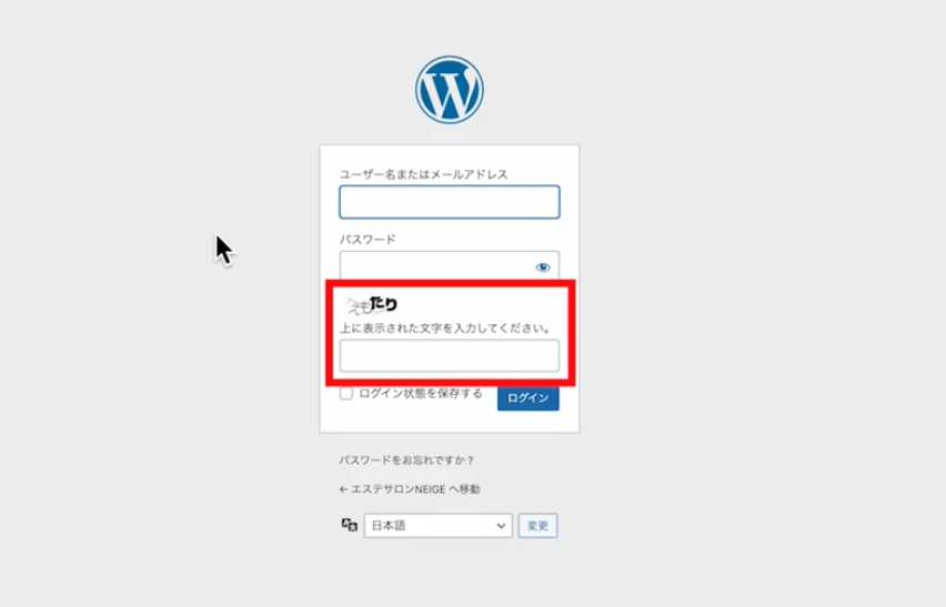 実際にログアウトしてwp-adminでログイン画面にいこうとすると、
